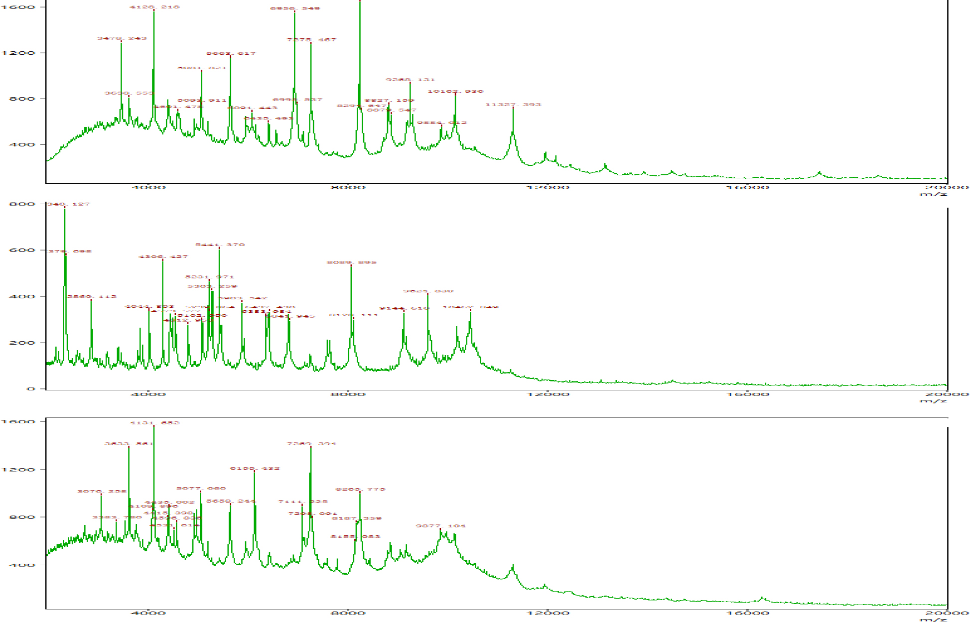 MALDI-TOF MS is a reliable tool for identifying bacterial species as it analyses the molecular spectra of bacterial cells. The procedure is expedited relative to existing approaches, requiring less than 5 min to acquire a spectrum and validate it against a reference library, which is, on average, 1.45 days swifter than conventional techniques for detecting bacterial isolates. In a clinical context, the utilization of MALDI-TOF MS identification has been shown to reduce patient mortality due to the swift identification process and aids in lowering the expenses associated with standard microbiological recognition (Elbehiry, A.,et al.,2022). MALDI-TOF MS recognition is both quick and reportedly very accurate. More than 90% of Gram-positive strains were accurately identified using a MALDI-TOF MS system in comparison to molecular approaches, while around 90% of Gram-negative strains were correctly determined to at least a genus level in a clinical context involving humans (Torres-Sangiao,et al.,2021).