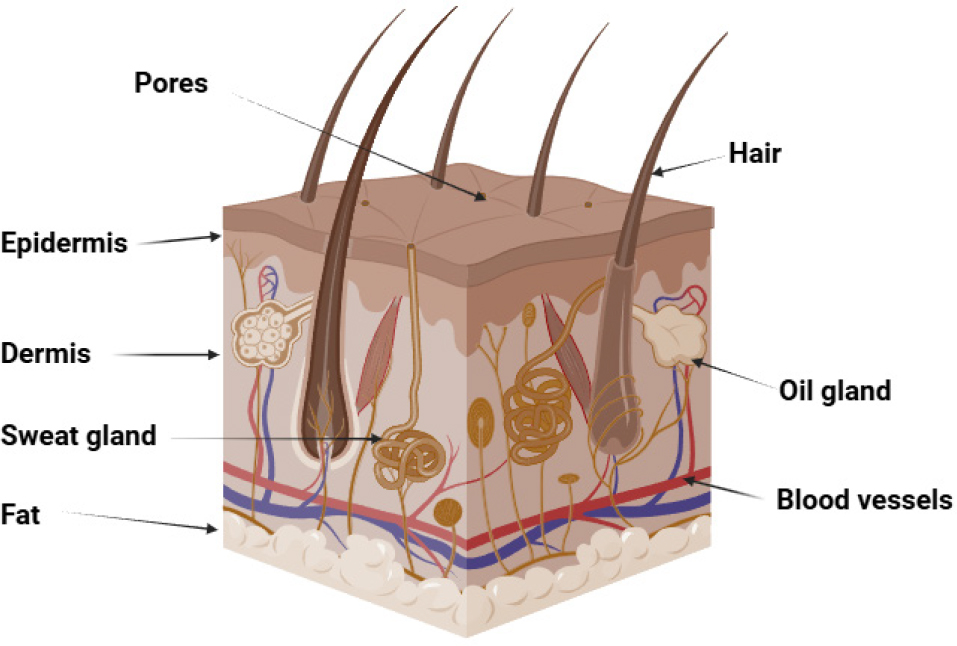 Transdermal Drug Delivery System (TDDS) is used when local effects on severe skin disorders cannot be achieved via oral, sublingual, rectal, or parenteral drug delivery techniques. For TDDS, the skin absorbs the drug and delivers it to the site of action, resulting in a more effective therapeutic effect. The skin is one of the most accessible organs for administering drugs, and it can be utilized for both local and systemic treatment. The skin, the largest organ in the body, consists of three main layers: epidermis, dermis, and hypodermis (Figure 1). The epidermis is the outermost layer, consisting of stratified squamous epithelial cells. The dermis, a thick layer of loose connective tissue, is visible to the naked eye and contains important blood vessels. The hypodermis, or subcutaneous tissue, lies underneath the dermis and contains the vascular plexus, lymphatic veins, and a large amount of adipose tissue (Lopez-Ojedaet al., 2021). By removing first-pass metabolism by topical administration, intravenous therapy’s hazards and issues are avoided. Gel formulations are less effective in delivering hydrophobic drugs, but they release active ingredients faster. Because of their high permeability and poor solubility, class II drugs are more difficult to absorb and move through the body than their membrane-passing counterparts. Research has shown that emulgel, a combination of gel and emulsion, may be a preferable alternative for the topical delivery of weakly water-soluble pharmaceuticals (Prusty et al., 2024; Khamkatet al., 2022). Emulgel is a combination of oil-in-water (o/w) or water-in-oil (w/o) emulsions with a gelling agent incorporated. The smooth texture of emulgel ensures better patient compliance due to its ease of spreading on the skin (Olayemi and David, 2023). It has many beneficial qualities for dermatological applications, including thixotropy, non-greasiness, and spreadability. It has a higher loading capacity than other transdermal preparations and is affordable (Figure 2) (Talatet al., 2021). Emulgels are classified into three types based on particle size: macroemulsion gel, microemulsion gel, and nanoemulsion gel. Macroemulsions are invisible but visible under a microscope due to larger droplets. Microemulsions are isotropic mixtures of water, surfactant, oil, and co-surfactant with droplets ranging from 10 to 100 nm. Nanoemulsions are transparent oil-water dispersions with globule diameters between 1 and 100 nm, providing improved delivery and transdermal penetration (Charyuluet al., 2021; Ganjuet al., 2024).