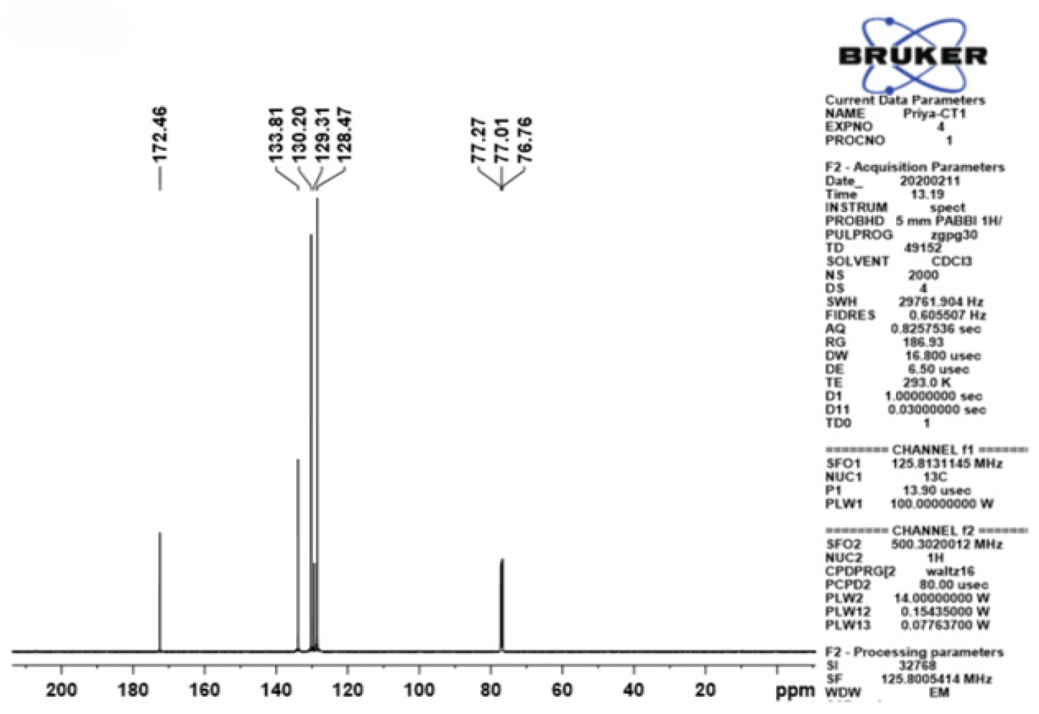 13C NMR spectroscopy of the synthesized compound showing distinct carbon signals supporting the molecular backbone arrangement.